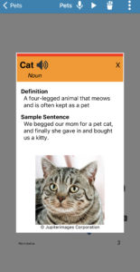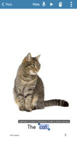 Raz-Kids内でも全部の単語にはないのですが、リーディングモード内に単語を確認できる機能があります。